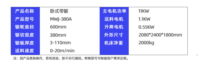 MWJ-380A臥式帶鋸